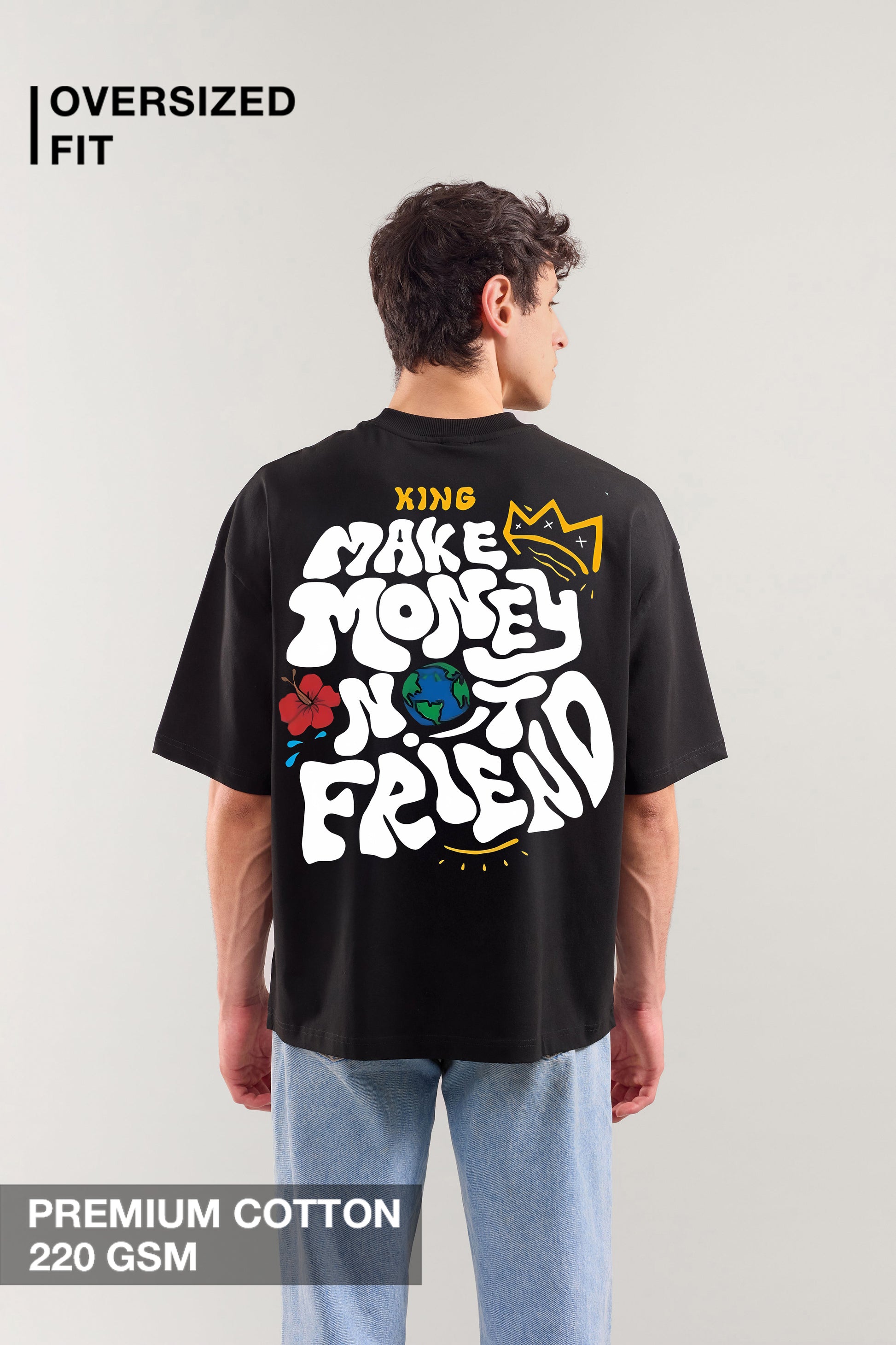 Level up your street game with our "Make Money Not Friends" premium oversized T-shirt, crafted for the true kings of hustle. Made from ultra-soft, high-grade cotton, this luxe black tee features bold, graffiti-style graphics with vibrant colors and powerful vibes that embody a fearless, money-driven lifestyle. Perfect for fashion-forward streetwear lovers who know success speaks louder than words, this statement piece brings luxury, attitude, and unstoppable energy to your everyday style.